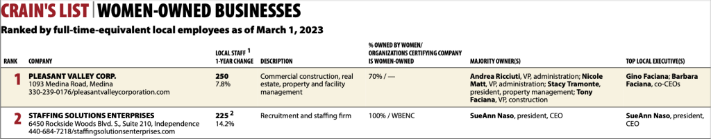 We are proud to announce that Staffing Solutions Enterprises has been recognized as one of the Largest Women-Owned Businesses by Crain’s Cleveland.